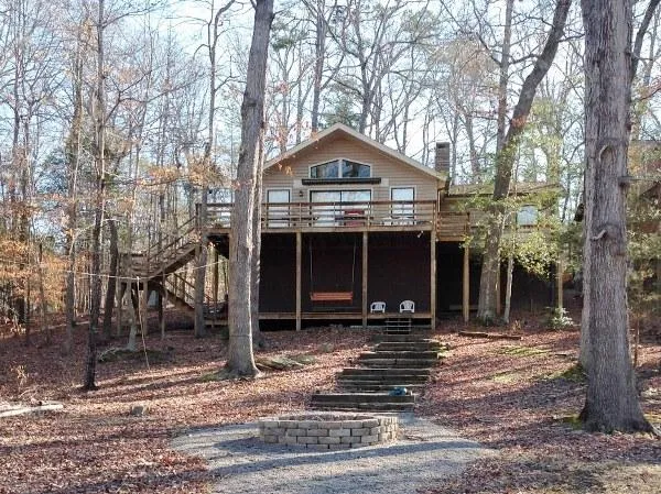 Peaceful, Relaxing Lake Cottage on quiet cove. Open floor plan with living rm/dining area & kitchen all enjoying the lake view from the large lakeside windows, sliders & deck. Nice wood floors & fireplace in living area. Ceramic tile floors in kitchen/bathrooms. Master bedroom & MBA lakeside w/ sliders to deck. 2 more bedrooms roadside along w/ BA, laundry room w/ separate entrance. Unfinished basement w/ outside entrance for extra storage room. Porch swing for relaxing and a nice gravel pathway to boathouse where along the way youll enjoy a fire pit area for enjoying Smores w/ friends & family. Single boathouse w/ sundeck. Nice cove to main lake views from boathouse. Lots of summer fun to be had with deep water & less than a minute to the main lake!