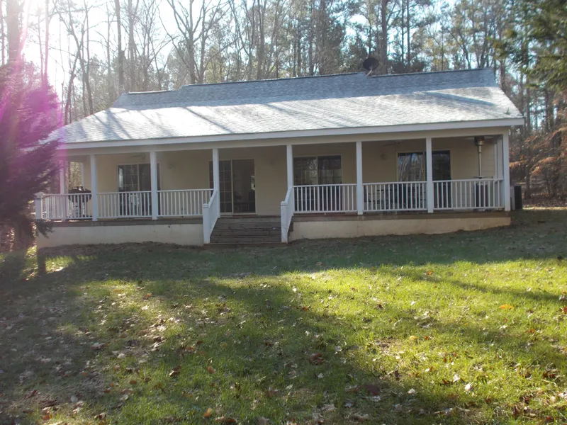 Looking for lakeside living all on one level? This adorable waterfront home is it! Great lakeside covered porch. 3 BR.,(Master bedroom and 2nd bedroom are lakeside,3rd bedroom is road side), 2 Baths, spacious great room with cathedral ceiling, fireplace with gas logs, roomy convenient kitchen and dining area. Open, airy and inviting.New roof 2013. Large, very private lot. Gravel walkway with bridge to lake and single boathouse. (Single boathouse is part of a double boathouse but is with this property - single electricity,etc. Only for this property's use) Flat lot. Great price!!