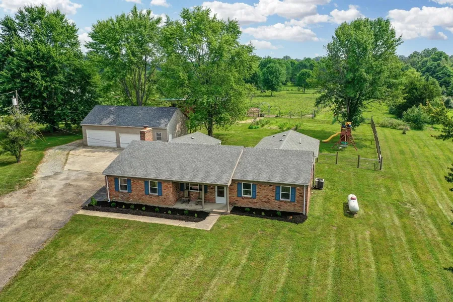 City chic mini farm has renovated home with todays contemporary flair on 6.3 gorgeous acres with pond. Detached, 4 car oversized garage is 44X 24 with concrete, electric and full attic storage. Big barn has 2 horse stalls & 3 fenced pastures. Pergo, ceramic tile & newer carpet. Amazing kit, s/s app, granite counters, huge pantry. Must see!