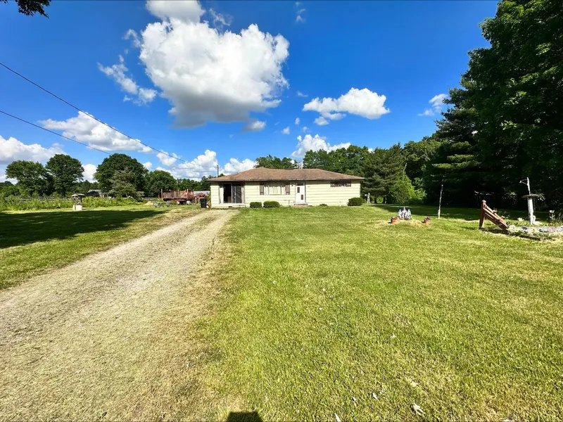 Country living on 1 Acre! Great opportunity for you to make it your own. Back shed also has electric to it. Seller had a plush garden for many years in the back yard. Public Water available at the road. Sold As-Is.