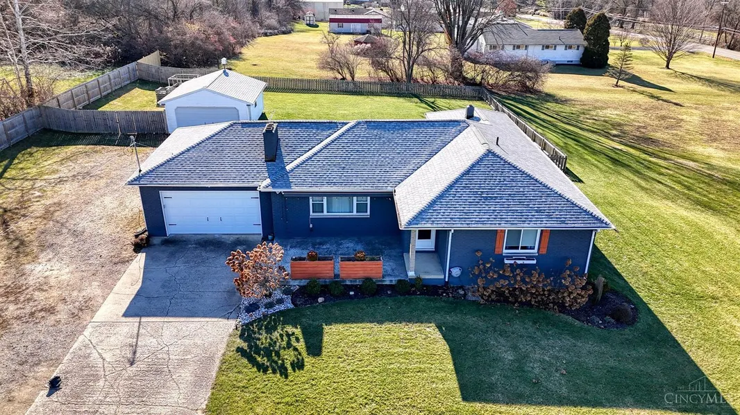 This captivating 3-bedroom, 2-bath ranch, set on a vast 2.2-acre lot with a fenced yard, highlights modern updates and luxury. It features 2 wood-burning fireplaces, a 4-car garage for vehicles and hobbies, and is outfitted with top-notch SS appliances. The house, remodeled with all elements post-2019, includes elegant granite countertops, subway tiles, a Bosch dishwasher, and a motion-sensor faucet. Extras include a water softener, tankless water heater, sump pump with backup, LED lights, and ceiling fans. The decor boasts barn doors, a custom closet, Sunsetter awning, and a new roof. The large master bedroom has a spacious shower. The home has LVP flooring and a partially finished basement. Outdoors, enjoy a new pergola, stamped concrete, a 30-amp RV box, and vaulted ceilings, enhancing its allure and practicality.