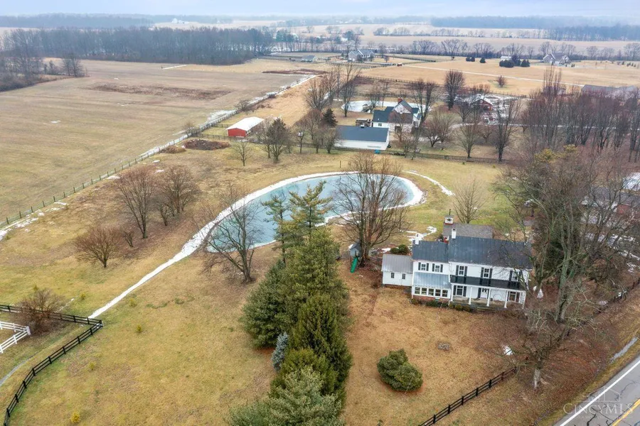 Nestled on a sprawling 5.41-acre expanse, this property embodies timeless elegance and historic charm. The home warmly welcomes you with a large, covered porch and natural brick walls that exude rustic authenticity, creating an inviting atmosphere. Two wood-burning fireplaces stand as focal points, providing warmth and infusing a sense of tradition and coziness into the living spaces. The outdoor experience is heightened by a large pond and a screened-in patio, offering an ideal setting for relaxation and social gatherings. A charming three-season room adds versatility and serves as a delightful retreat. The estate further boasts a 4-car garage with space for a workout room or workshop catering to various lifestyle needs. With over 3,000 square feet of living space, four bedrooms, and three full baths, this residence harmoniously blends classic charm with modern comfort, creating a haven that captures the essence of gracious living.