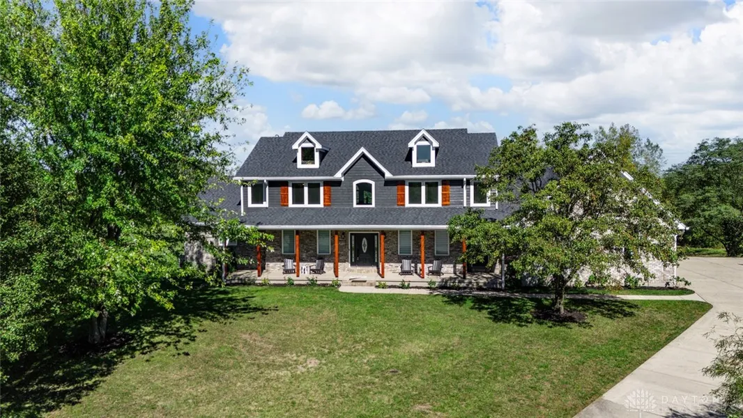 Nestled on 2.84 acres of beautifully landscaped grounds, this stunning residence features a stylish covered front porch, and a newly installed vintage-style front door. Step into an elegant foyer that showcases peek-a-boo views of the backyard. The expansive, two-story great room embodies luxury and sophistication. A floor-to-ceiling modern electric fireplace with a custom mantle adds warmth, while arched windows flood the space with natural light and the dining room features a modern woodworking accent wall and a custom farmhouse chandelier. The chef's kitchen is a dream with quartz countertops, ample storage, and a sleek touch-screen refrigerator. The dining island and cozy breakfast nook, framed by a bay window, offers the perfect space to entertain. The main floor primary bedroom boasts private deck access, a walk-in closet, and a spa-like bathroom with a soaking tub. Outside, enjoy ...