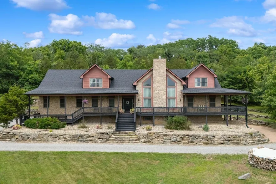 AMAZING-Beautiful-Peaceful are just a few ways to describe this resort like property. Almost 6,000 square feet total living space. It has all the room you have dreamed of both inside and out. The warm inviting main floor offers open kitchen w/ granite countertop, bar seating, dining area, and large enclosed back porch. Main level owners suite with walk in closet, large bathroom w/ jetted tub, tiled shower and double sinks as well as a walk out to the wrap around porch. If that's not enough on the main floor there is a smaller bedroom/office, half bath and over size laundry room. Upstairs offers 3 more bedrooms, 2 full baths, oversize bonus room and an open loft that overlooks the stone fireplace below. Basement has an entertainment kitchen and walkout to a stone patio. Get lost wondering the 19+ acres of woods, wildlife, stone walls and 28 X 40 pole barn. Outdoor wood burner can be utilized to heat the whole home and hot water, or both can be run on propane
