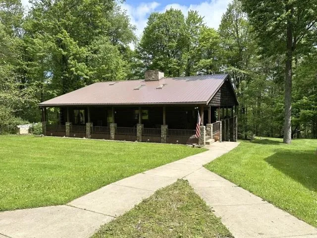Pristine Log home in a perfect setting. Wrap around porch with a swing on the upper level and a hot tub on the lower level. Current owner uses this as an Air Bnb and is selling it fully furnished. Two Bedrooms and Two full baths as well as a half bath and laundry on the first floor and 1-2 Bedrooms with a Full Bath on the lower level. First floor boasts a Great room that has the formal dining area and a living room. In the lower level there is a large family room that walks out to the lower porch level with the hot tub. 3 fireplaces (kitchen, living room, family room) to supplement the forced air furnace that has central air. Guardian whole house generator with its own dedicated propane tank. There is also a detached two car garage with taller than normal doors and a separate area on the side of the garage for your lawnmower.