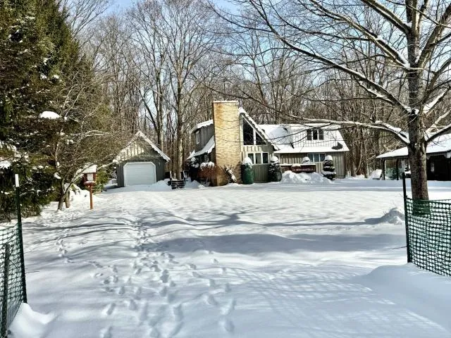 Nestled in a peaceful wooded setting and surrounded by abundant wildlife, this charming 3-bedroom, 2-bathroom retreat offers the perfect blend of comfort, and rustic charm. Whether you’re seeking a year-round residence or a relaxing getaway, this property invites you to unwind and enjoy nature at its finest. Step inside to a warm, inviting living area featuring a wood-burning fireplace, ideal for cozy evenings. The first-floor primary bedroom offers added convenience and includes direct access to a private deck overlooking the serene backyard—your own tranquil escape. Outside, the property continues to impress with exceptional storage and workspace options. You’ll find a large two-stall detached garage with an attached carport, plus an additional detached garage on the opposite side of the home. A handy shed out back adds even more versatility for tools, equipment, or hobby space. With i...