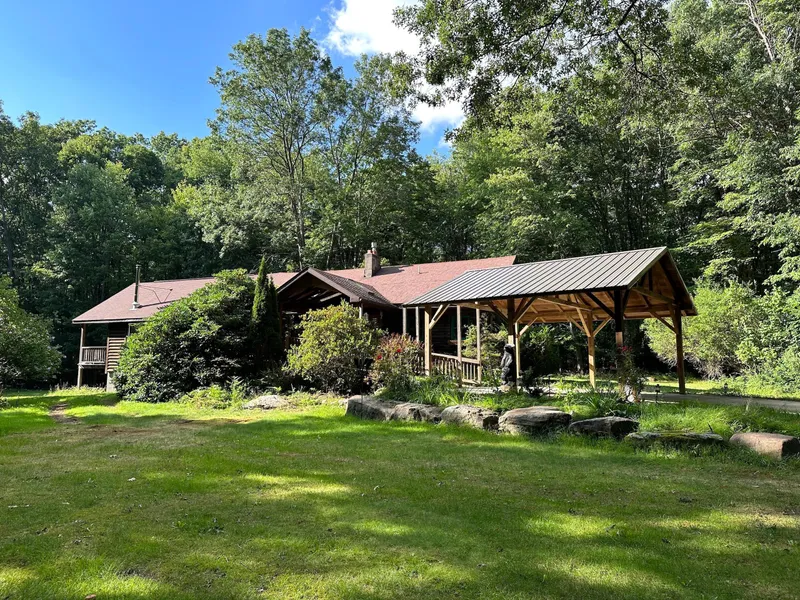 This property is located in a well known area for wildlife and great recreational opportunities. The beautiful stoned road leads back through some of the highest quality timber in the world as it opens up into a beautiful yard with a carport in front of the home. The large garage can store equipment as well as serving as a potential livestock or horse barn. The upper area could be finished for a game room or play area with large steps and deck leading up to it. The home features a cathedral ceiling great room with hardwood floors, a bed or office to the right. The stair way leads to a full bath and two bedrooms above. The open design kitchen flows into a sunroom with large deck looking into the forest. The master bedroom is massive with large windows looking to the West. The master bedroom has hardwood flooring and has a master bath and large closet with a walkout deck. The basement could be finished with a walkout door for entertainment room. The property features great a great trail system with sever large hunting blinds and ponds. Free gas provides the homes heat. Call today for a showing on this truly remarkable place.