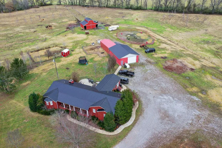 Own your own slice of Tennessee paradise: all-brick, single story home, shop and barn on level & private 28.96 +/- acres.