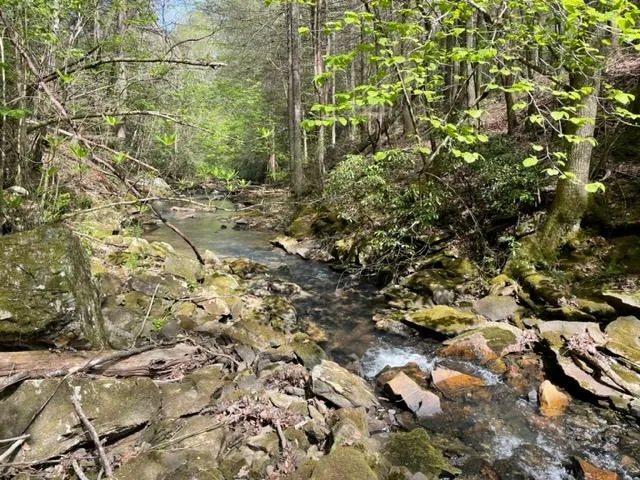 Come to the Mountains! This beautiful tract of mostly wooded land comes with a mountain stream and a tiny cabin. This land is unrestricted. It would be great for hunting or building your own retreat. Small acreage tracts like this on a paved road are hard to find. Nice mix of hardwoods, conifers, and mountain laurel. Public water, electricity, and fiber optic internet are available. Call us today before it's gone.