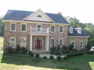 Immaculate 6 bedroom (4 bedroom septic), 3.5 bath Colonial stone front home tucked away on 20 acres in Strasburg. Upgraded features galore including a large stone fireplace and built-in bookshelves in the family room, gourmet kitchen with stainless steel appliances, Corial Counters, raised island and breakfast room, formal dining room, formal living room, french door, den/office, cherry hardwood floors throughout the first floor, master suite with walk-in closet, whirlpool tub and separate shower, 2nd floor utility room, full finished basement with 2 additional bedrooms, full bath & more! Come see what this home has to offer your family!