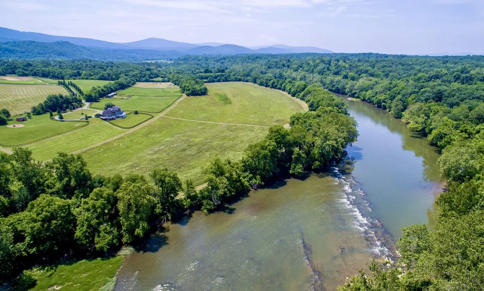 2020/2021 Stunning renovation of this Prime Waterfront property about 75 minutes to DC. Modern and warm with gorgeous finishes of natural wide pine plank floors, exposed ceiling beams and tongue and groove panel ceiling treatment. NEW insulated vinyl siding on whole house, NEW Composite deck railings on refinished rear wrap deck and NEW composite side and front porch. Open floor plan with a stone hearth at the fireplace centers this home. Exquisite and Expansive Main Floor beamed ceiling Primary Bedroom Suite with private laundry, MB with Shower and Tub adjacent the Library with Built-In shelves. Two powder rooms on Main floor. Chefs kitchen with Stainless appliances, view from the sink window and dining area and easy reach to the large dining room. Some New Windows, New patio doors out to the deck, 2 New HVAC's, 1 new HWH, Fresh Paint, Refinished Pine Floors, New Blinds, Some NEW Appliances and an added and second Washer Dryer to MB suite. Lower Level finished with 5 bedrooms and 3 baths and flex space and a wood burning stove. A 5 bedroom Perc and 20GPM well. This is the Gold Coast of the river, low bank, easily accessible, private, with a set of rapids for a beautiful river sound heard year round. Out buildings for a hobby farm with electric and partially fenced rear paddocks and fully fenced front paddock. This part of the river is known for canoeing, kayaking, tubing, fishing as its runs bold and yet is serene with sounds of the rapids from the deck. Excellent fields and pastures for horses, sheep, goats or some livestock, vines or other agricultural uses. The fields are easy to get around and there are fenced paddocks. The House is NOT in Federal floodplain thus does not require flood insurance. Confirm with your Insurance provider as needed. This sale includes both lots totaling 40.4 acres. Lot 15Q15 (20.2acres) and 15Q14 (20.2 acres) thus an amazing value here.