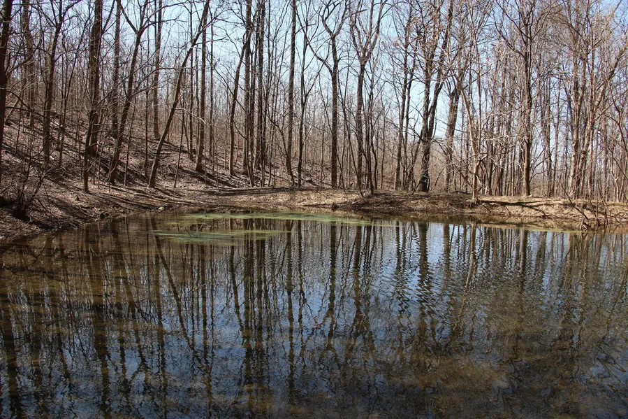- Flowing creek that features a small waterfall and large wildlife watering hole