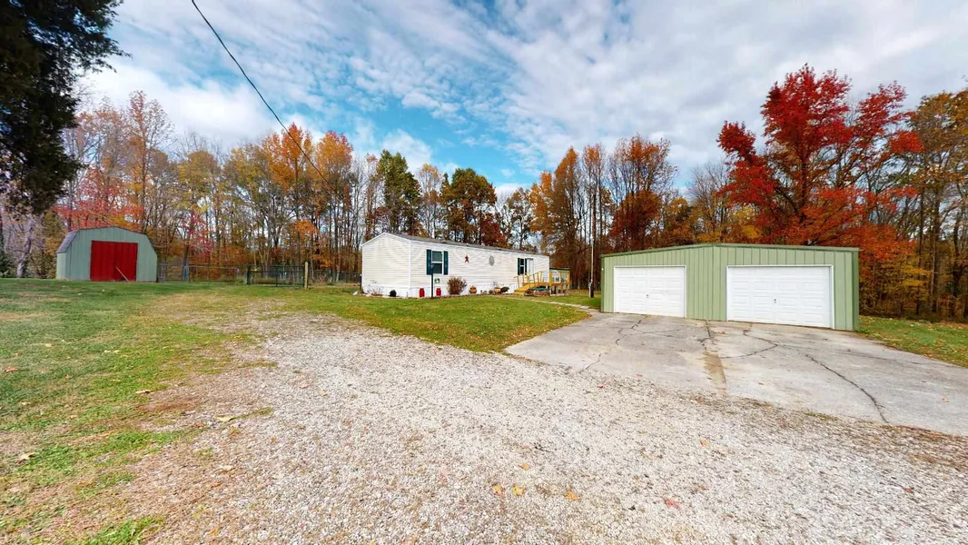 THREE, TWO, ONE. This unique country property has it all! A three car garage, a two car garage, a like-new home placed in 2019, and top all of this off with a picturesque and private one acre lot. You'll also have the added benefit of affordable living as there is no water or sewer bill since the property has a private well and septic. Generous storage space in these buildings for your gatherings, hobbies, vehicles, atvs. The oversized, insulated 3 car garage with 200 amp service is heated and offers a half bath, laundry facility (washer stays), hookups for a kitchenette, and a nice functioning hot tub that is included with the sale. Very well-kept home consisting of two bedrooms, one full bath, laundry room, eat-in kitchen fully applianced and living room. Home also has 200 amp service. A nice partially white rock lined asphalt driveway leads to this wonderful property. This home is only 20-25 min from Toyota and the east side of Evansville. A portion of the back yard is fenced-in and there is also a storage shed plus the front 2 car garage. Per seller, the rear property line is approx 20-30 feet past the fence line, to the woods line on the north side, and 6-8 feet past the storage barn. Septic located on the north side of the property near the tree stump, pumped in May 2020. Dish Network and Hughes Net available.