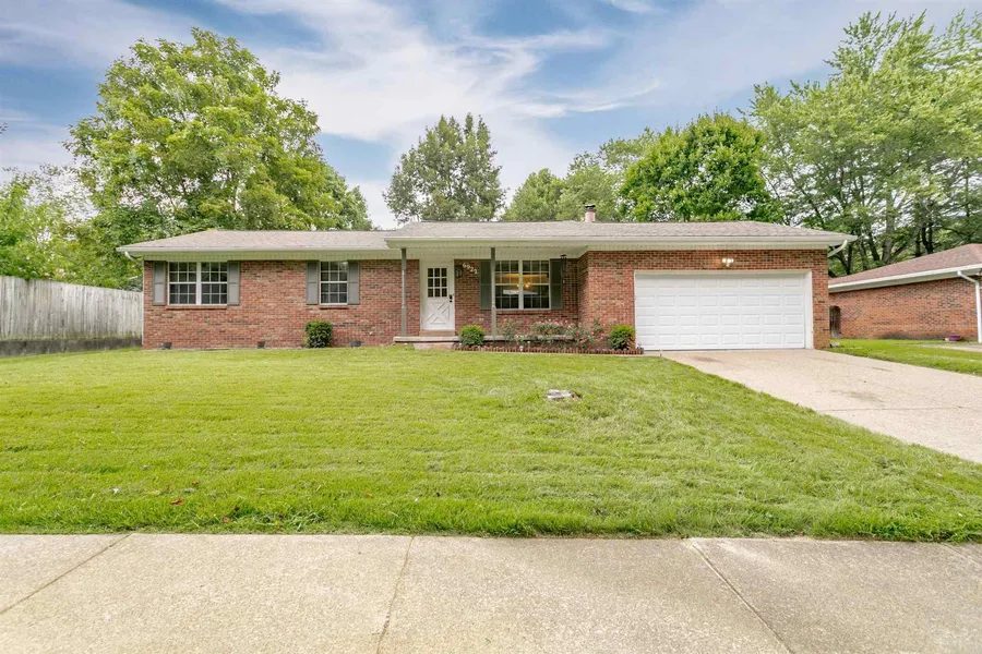 VERY NICE ALL BRICK RANCH HOME IN NEWBURGH! The covered full length front porch invites you into this 3 bedroom and 1.5 bath home with an attached 2 car garage. The spacious living room/great room features a cathedral ceiling and lovely brick wall fireplace ( with a wood burning insert). The large ( 80 x 105 ) lot has a wooden fenced back yard, a lovely new patio - plus the gazebo and picnic table are included. The home has several new updates including: High efficiency HVAC (seer 23) new in 2020--new garage door in 2021 -new laminate flooring in bedrooms in 2021 - new sliding glass patio door - ceramic tile in kitchen - remodeled half bath. All flooring is wood laminate or ceramic tile. Newer stainless steel kitchen appliances, and washer and dryer are all included.