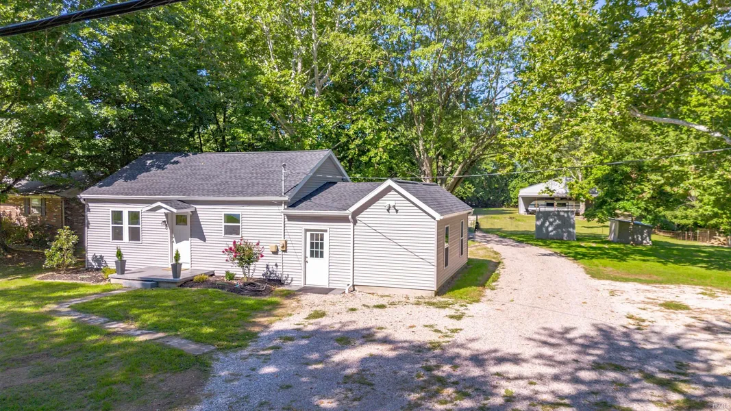 Start Showing Date: 8/19/2023 Prime and premium location in the heart of the Newburgh Paradise area near all the Castle schools and Rolling Hills Country Club. This unique property offers a modest, yet totally updated 3 bedroom home AND a HUGE detached pole barn (50x70) with loads of parking, vehicle storage, and more all on a 1.3 acre lot. The home offers a long list of very recent updates including new roof with all new decking, windows, exterior doors, siding, HVAC system, painting, flooring, remodeled bathroom with new everything, new kitchen with all appliances included and an open living area. Newly finished breezeway area provides additional storage space or mud room area with additional exterior door, and access to the newly finished third bedroom. Perfect backyard for summer and fall enjoyment. You can easily bring ALL of your extras like the boat, RV, trailer, fun car, golf car...
