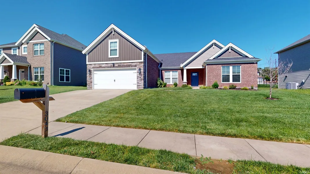 Experience this Awesome Ranch Home (the Tamarack plan) with 4 main-level bedrooms plus a bonus room and numerous amenities. Take a virtual stroll through this beatiful home with our 3D Matterport tour! Enjoy a spacious entryway with a stylish, convenient drop zone and open concept living space featuring a gas fireplace, a decorative tray ceiling, and an expansive island. The split bedroom layout ensures privacy, with brand new carpet in all bedrooms and ceramic tile throughout other areas. Step into a dream kitchen boasting ample storage, a massive 12' island with bar seating, quartz countertops, a tile backsplash, and recently updated dishwasher and refrigerator (in the last year). Retreat to the spacious primary bedroom with an en suite that includes a tiled shower, dual sink vanity, furniture space underneath the transom window and a large walk-in closet. The second full bath is equal...