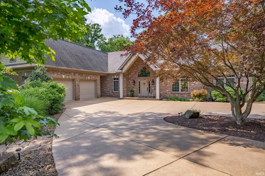 This wonderful 5.401 acre lakefront lot is an oasis located between Newburgh and Boonville in the beautiful Lost Lake Subdivision. Welcome to this peaceful, wooded lot where deer and turkey are known to walk through. The open foyer leads you into this spacious home full of many details! From the living room, you have a beautiful view of the backyard and lake and can enjoy the double sided gas fireplace. The extremely spacious eat in kitchen has granite and Corian countertops, a separate pantry, Kitchen Aid appliances, a breakfast bar, 2 storage closets, a window seat overlooking the side patio, and doors that lead to the 13x21 screened in sunporch! Up the main staircase you will find 2 spacious bedrooms with large, walk in closets, a Jack and Jill bathroom, a large cedar lined closet, and a very spacious attic access. Up the separate staircase is a bedroom with an en suite bathroom. The lower level includes a very large rec room with a sitting area with a stone, wood burning fireplace, a pool table, and mini bar! Also included in the lower level is a full bathroom, bedroom, storm shelter and large unfinished storage room. Wrapping up this one owner home is an attached 2 car garage on the main level and a separate driveway to the other attached 2 car garage with access to the lower level, a deck and 2 patios! This beautiful property is one that is a must see with an abundance of storage and many little details that will make this feel like your new home! A 1 year AHS Home Warranty is also included!