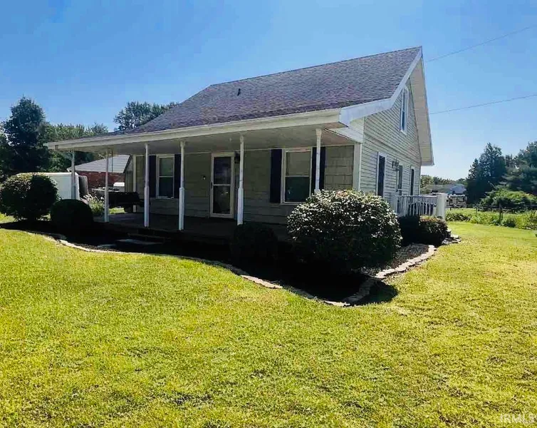 Welcome to this cute updated farmhouse located near the heart of Elberfeld. You're greeted by the large front porch, complete with a porch swing. The home's entryway opens up to the updated kitchen, which features a decorative shiplap wall, beautiful flooring and cabinets, subway tiled backsplash, and butcher block countertops. The open concept living space has a dining room that flows into the living room, with vinyl plank flooring that flows through the entire area. On the main floor of the home, you will find the primary bedroom, a full bathroom that features updated fixtures, and a laundry room with storage. The hallway has a built in storage cubby great for your keys and backpacks. The upstairs features an additional bedroom, and another space that makes for a great third bedroom, office space, or game room! Outside, there is a yard barn and a backyard that overlooks the pasture behind the home. There is no neighbor to the right of the home creating more privacy. Home is being sold As Is with a 1 year AHS home warranty($515) for the new owner's peace of mind.