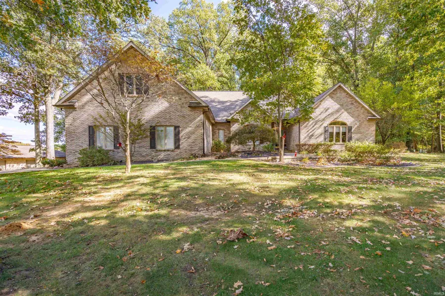Located on over 5 acres of tranquil wooded land, spread across two parcels just minutes from town, this custom-built ranch home offers over 4,000 sq ft of elegant living spaces designed to showcase the builder-owner's craftsmanship while embracing nature's views. The split-bedroom floor plan provides privacy and features 4 spacious bedrooms, including a fourth bedroom or den with built-in bookshelves and a desk, creating the perfect spot for relaxing or working from home. The heart of the home is the large open kitchen and family room, complete with a generous eating area, making it ideal for family gatherings and entertaining. The formal dining room and cozy breakfast nook add further options for enjoying meals and hosting guests. The primary suite is a true retreat, offering a recently updated master bath with a walk-in shower, tub, vanities, and a spacious walk-in closet. A three-seasons porch, often used as a family room, allows for year-round enjoyment of the natural surroundings. The property also includes a detached 4-car garage, currently used as a workshop, providing ample space for hobbies and storage. The unfinished basement is reserved for utilities and houses an updated HVAC system and tankless water heater for energy efficiency. With over 2,000 sq ft of unfinished space on the second floor, the home offers limitless customization potential. This two-parcel property provides the option to enjoy the entire acreage or parcel off a portion for a separate building site. Abundant wildlife and peaceful surroundings make this home a serene retreat with endless possibilities.