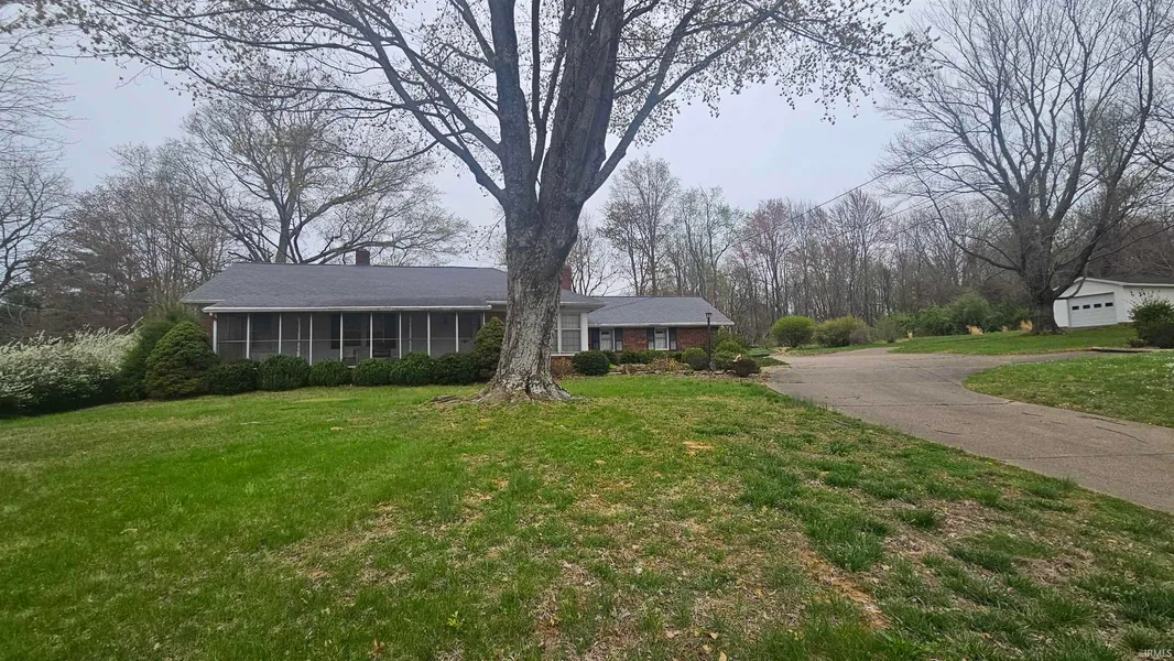 Rare opportunity in Newburgh with acreage. This brick ranch sits on 11.6 acres and has so many possibilities. The home has a screened front porch that leads to a large living room. The family room with electric fireplace has a pass through window to the galley kitchen. The dining area leads to the sun porch. The home has 3 bedrooms and 2 full bathrooms. The partial basement is perfect for extra storage. There is a 2 car attached garage and a 1 car detached garage. Property also has a lean to. There are 7 parcels. The property is being sold as is