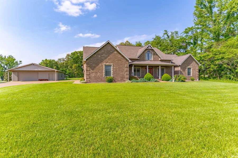 As you drive down the 400 ft concrete driveway, don't miss the plush green grass on all 3.48 acres! This beautiful all brick 4 bedroom 3.5 bath home is definitely a must see in person. Foyer entry with den on the right and large great room. Split bedroom design with 2 large bedrooms and full bath on the right side of the house. Primary bedroom is on the other side with laundry off of it. Head up the wide staircase to the large 23 x 20 rec room, full bath and large bedroom. There is an attached 3 car garage with furnace. If that wasn't enough, the 36X48 detached garage is amazing. Separate area with garage door for storage and equipment. The rest of the garage could be the perfect man cave! Half bath and heated! Don't miss out on this amazing property!! Whole house generator as well!