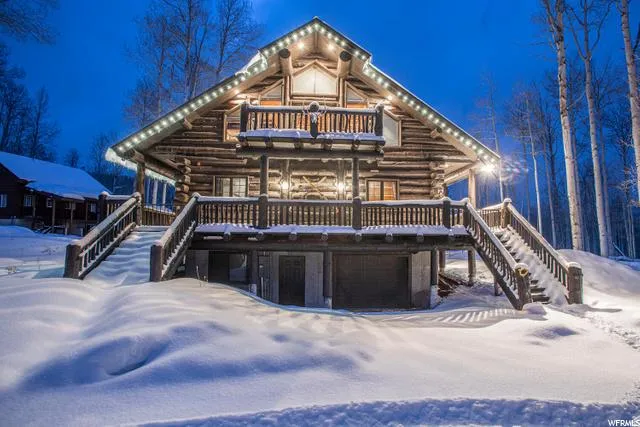 ***Showings welcome beginning Friday, 1/29 at 5pm*** This rustic "smart home" log cabin powered by Control4 is one of a kind with its unique dark stain and chinking inspired by National Park lodges built in the early 1900's. This secluded, rustic, elegant, turn-key/fully-furnished mountain retreat-built with only the highest level of quality-sits nestled on he upper mountain in the beautiful, gated community of Timber Lakes amongst aspens and pines. Surrounded by serene mountainous beauty, this luxurious charming getaway boasts vaulted tongue & groove ceilings, extraordinary exposed beams, mountain-chic high end finishes, exquisite great room with massive windows, stunning natural light, private view with no backyard neighbors, immaculate kitchen, stainless steel appliances, granite countertops, beautiful hardwood flooring, tastefully designed bathrooms, and spacious loft master suite with private balcony. Complete with a pool table, large hot tub, huge back deck with gas fire pit, downstairs theater and bunk sleeping quarters makes it perfect for entertaining. Sleeps 15 people. Large, oversized toy garage allows plenty of room for snowmobiles, atvs and storage. Indulge yourself in the great outdoors, breathe in the fresh mountain air, experience unbelievable wildlife and star gaze as you soak in the hot tub. Snowmobile from your own front door! Endless recreational activities surround you including, epic snowmobiling, phenomenal skiing, world-class golf, hiking, hunting, fishing and more. Enjoy all the amenities of Park City & Heber Valley right at your fingertips.