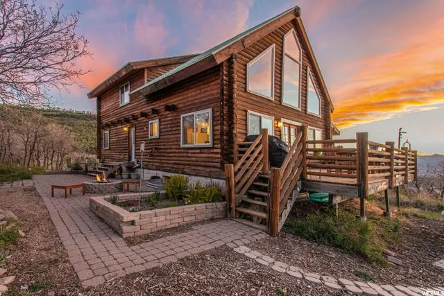 This remarkable log cabin sits perched upon 1.2 acres of beautiful property offering unobstructed 360 degree views arguably the best in Timber Lakes! Feel like you're on top of the world in this mountain retreat! Spacious master loft suite with it's own private balcony and large master bath with walk in closet, generous shower and large tub. West loft offers incredible views of the Wasatch back both lofts offer great space for TV room, offices, or games rooms. Cozy main level room is perfect for mornings by the fire in the winter and your toes will stay warm throughout with radiant heat flooring. Roomy closets in all of the rooms. Basement is a great rec room with laundry room and bath (bath closet is plumbed for another shower). Bonuses include a Wifi controlled garage door opener and Timber Lakes award winning drinking water. Three patios to choose from depending on the time of day! Ro...