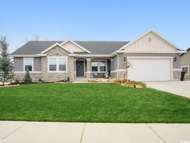 Incredible rambler on a quiet cul-de-sac in beautiful Heber neighborhood! This amazing, practically brand-new home has everything you could ever want, complete with new landscaping, fully-fenced yard and basement entrance to completely separate living quarters. Offering countless upgrades including granite countertops, oversized island, stainless steel appliances, gas stoves, double ovens, custom cabinetry, 9 & 12 ft ceilings, gorgeous shiplap fireplace with beautiful flooring both upstairs and down. The huge master suite with walk-in closet has a grand bathroom with double sinks and dual shower heads. This remarkable home offers single-level living with plenty of storage room, Nest thermostat, Wyze doorbell, RV parking, Gemstone exterior lighting and more. Do not miss out on this wonderful opportunity to own the home of your dreams!