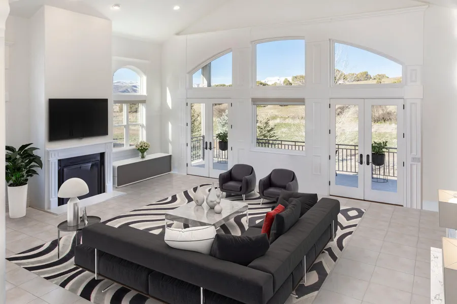 An unforgettable first impression awaits upon entering this stunning estate in the coveted neighborhood of The Crossings at Lake Creek. The grand entrance reveals the magnificent architecture of cathedral ceilings, soaring arches, large living spaces, and pristine marble floors throughout. The floor-to-ceiling windows drench you in sunlight and provide beautiful views of surrounding nature out your back door. The kitchen is the heart and functional center of this home which offers custom cabinetry, gas range, double oven, pantry and large island. This home is an entertainer's delight where gatherings large and small have welcomed friends and family. Large deck off the kitchen to enjoy an afternoon libation and watch the setting sun. Upstairs is the spacious primary bedroom with an enormous walk-in closet and ensuite bath along with two other guest rooms and another full bath. The lower level is "fun central" with two large bedrooms, workout room and a massive gathering area. Don't forget the 3 car garage and extra storage space for all your toys. Only 20 minutes from Park City ski areas, 15 minutes to Deer Creek and Jordanelle reservoirs. Minutes to 108 holes of championship golf, and blue-ribbon fishing on the Provo River. A phenomenal home for someone who appreciates quality and style. The Crossings at Lake Creek is a master planned community with acres of trails, open space & amenities.