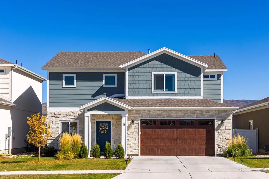 This meticulously cared for and fully upgraded 2021 build is perfect for the family who is looking for new construction! Upon entering the home, the vaulted ceiling, large windows, and open concept floor plan allow for great natural light. A cozy family room with a fireplace leads directly into the dining room overlooking the kitchen, making this the perfect setup for entertaining guests. The homeowners have added additional upgrades such as custom lighting, accent walls, quartz countertops, upgraded appliances including a double oven and custom modern banisters. Unobstructed views from the second floor bedrooms and stairwell allow each room to have extraordinary mountain views. The primary bedroom is complete with custom shelving, a private en suite, and walk-in closet. Abundant storage on the second floor additionally offers convenience. A deck has been built off the back of the home for a family to enjoy peaceful neighborhood and valley views. The painted garage is finished with new epoxy flooring. For outdoor enthusiasts, enjoy the pathway for biking and walking. This trail system coupled with the creek behind the home creates a sense of privacy with no neighboring overlooking the backyard. Walking distance to Timpanogos Middle School, Old Mill Elementary, Heber Valley Hospital, and less than a 30 minute drive to ski resorts, Jordanelle State Park, and less than an hour drive from Salt Lake International Airport, this beautiful home provides a serenity away from busy areas.