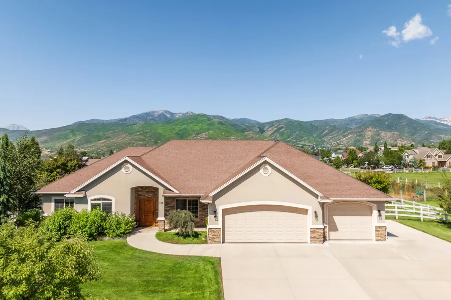 Spotless home in Midway with single-level living and mountain views of Timpanogos and the Wasatch Back. This home was actually custom-built to ADA specifications with no stairs so it is a great home for downsizing or aging in place. It feels much larger than you might expect with wide hallways, 10-foot ceilings, and a spacious open floor plan that is great for entertaining. Updates include the kitchen with Viking appliances, hardwood floors, and brand new carpet in the bedrooms. The primary suite has views of Mt. Timpanogos and a walk-in closet. There is also a spacious office, formal dining room, air conditioning, water softener, and a heated 3-car garage that has hot and cold water, a workshop, and ample storage.