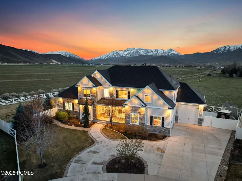 This exquisite estate features 6 spacious bedrooms and 6 bathrooms, and a great room boasting 20-foot ceilings, creating a bright and airy atmosphere. As you step inside, you're greeted by a striking 2-story chandelier made of thousands of shimmering crystals, illuminating the grand entryway. Enjoy unobstructed views of iconic Mount Timpanogos, adding a breathtaking backdrop to daily life. A dedicated office near the front entrance offers custom cabinetry and a built-in desk, ideal for remote work. The heart of this home is the custom kitchen-an entertainer's paradise-complete with double ovens, two dishwashers, a large pantry, and a butler's kitchen for seamless entertaining. The great room features a window overlooking your very own indoor racquetball court, designed for regulation play as well as basketball, pickleball, wallyball, and badminton. Retreat to the spacious primary bedroom...