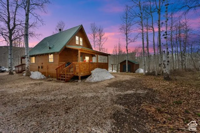 Tucked away in the thick pines of Upper Timberlakes, this charming log cabin is a peaceful retreat full of rustic charm and sweeping natural beauty. Perfectly nestled on a flat, heavily-wooded lot, with the added benefit of backing up to privately owned land, ensuring uninterrupted views and tranquility. Thoughtfully updated with timeless craftsmanship including granite countertops, custom cabinetry, stainless steel appliances, updated bathroom, rich hardwood floors, a smart-phone controlled 95% efficiency furnace, on demand water-heater, recently stained exterior, and more. Cozy up and unwind by the inviting warmth of the wood stove after a long day of snowmobiling or step outside onto the spacious covered Trex decks, where you can soak in stunning views, watch for wildlife, and listen to the soothing sounds of nature. This secluded property truly has it all including plenty of parking, and a huge 12'x28' storage shed for all your tools and toys. Adventure is just steps from your door! Enjoy direct snowmobile access to the Uinta National Forest, world-class boating, blue-ribbon fishing, championship golf, and five premier ski resorts all within 40 minutes. Wildlife watching, epic trails, and unforgettable sunsets await-- and yet, you are only minutes from Heber & Midway, and an hour from the vibrant amenities of Salt Lake City and Provo. Whether you dream of a weekend sanctuary or a full-time residence enveloped in natural beauty, this pristine property offers a one-of-a-kind, year-round mountain lifestyle!
