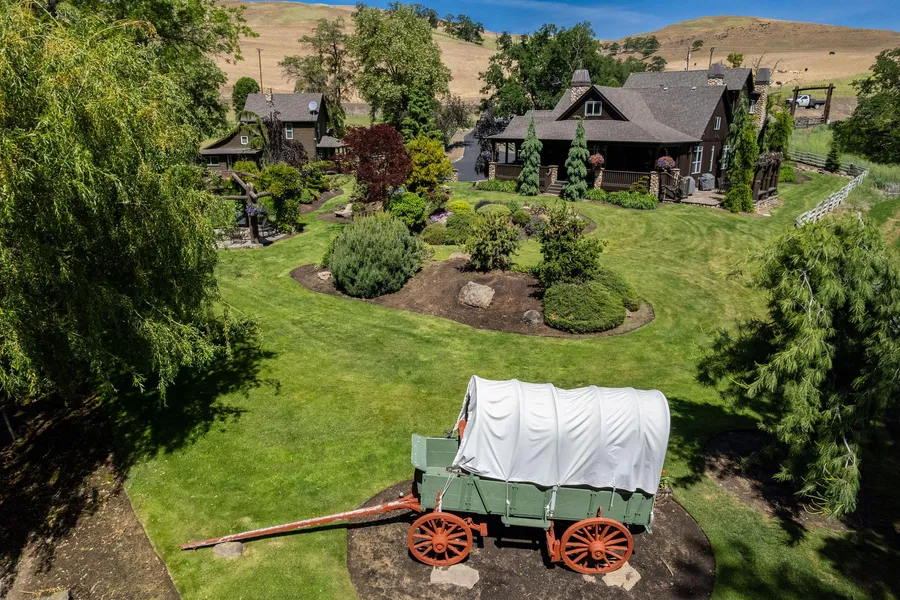 The estates expansive grounds feature 76 acres of undulating hillside terrains tillable, annually cultivated for dryland cereal crops such as fall wheat. Beyond the cultivated fields lie rolling hills and draws, which serve as a sanctuary for a thriving hybrid mule/black-tail deer population, lending the estate an air more akin to a wildlife ranch than a mere wheat farm.