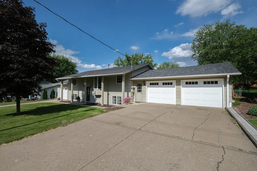 Coming Soon! A remarkable 3 bedroom 3 bath 3 stall garage home, located on .48 acres in town! The upper level is welcoming & bright with floor to ceiling living room windows, bookcase, open eat-in kitchen, center cooktop island, plenty of cupboards, 1/2 bath, master bedroom with private full bath jetted tub & shower and additional bedroom with washer & dryer in one closet. The lower level features an office with maple closet doors/trim, family room, bedroom, full bathroom, storage & utility rooms with washer/dryer hook ups. The lower level could be converted back into a duplex with the single garage access. The fenced in back yard is landscaped, private & peaceful with the large 26X18 deck, pond with fountain, brick patio & airy 3 season porch. Located just blocks from the Clear Lake Trail & Memorial Park. Updates in January 2020: Furnace & 2021: Dishwasher & 3 garage doors. Dont miss this one!