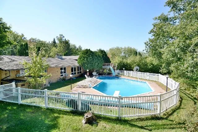 Some outstanding features of the home include 10 deep pool with 2000 s.f. pool grounds, mostly fenced. 2 full Masters w/baths. 4000+/- finished s.f.. IN-line designed Casual dining, kitchen, coffee & conversation sitting room leading either to the main level Master or to the formal dining, sunken living room with Stone Fireplace & pool area view. Then down to rec room & more or up to 2 bedrooms & upper level Master with access to decking above pool. Exterior structures include 2 car garage, oversize pole building for storage & several other such types..