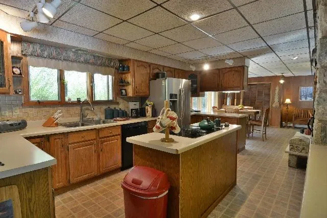 $185,000. 10 acres hold home & pool grounds w/profile to Sun & back to Wind on little traveled Village street. Amenities include 10 deep pool. 2 full Masters w/baths. In-line designed Casual dining, kitchen, coffee & conversation sitting room leading either to the main level Master or to the formal dining, sunken living room w/Stone Fireplace & pool area view. Down to rec room or up to 2 BR + Master w/access to deck & pool
