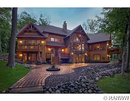 Mike Sharratt designed,custom built home on premier Balsam/Red Cedar Lake chain. Features include, Restored tobacco barn pine wood floors, Hickory cabinets, granite countertops, Built-in sound system, 8' solid doors, 3-full & 2-half baths, vaulted ceilings, solid wood beams, knotty pine ceilings & trim, wine cellar, 2-stone fireplaces, full bar and a 1500 sq' insulated garage. The chain of lakes include, (1841 acre Red Cedar), (357 acre Hemlock) & (295 acre Balsam) for a total of 2493 acres.