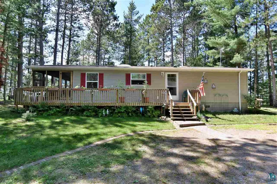 Western view thru the tall pines on this clear water Gilmore lake with 100" of level sandy frontage at the lake. Comes with 28' x 54' home with additional decking lake side & 3 season attached enclosed 12' x 28' enclosed porch. Large open area shows the kitchen/dining/living rm, 2 bed rm 2 bath. Comes with a bonus of a 28' x 40' detached garage w/ sleeping quarters in loft. Go visit the party room building ( Gazebo) all set up for fun.