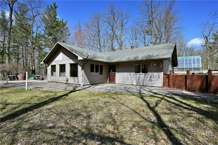 Set on a quiet, beautifully wooded 5-acre lot on a dead-end road, this well-maintained 3-BR, 2-BA zero entry home offers the perfect blend of comfort, functionality, & privacy. With 2,100 sq ft of main-level living and a free-flowing layout, this property is a rare find-ideal for year-round living in the Long Lake recreational area. The home features luxurious custom built-in cabinetry, a cozy fireplace, & a pellet stove that adds both warmth & charm. The recently remodeled bathroom boasts a custom shower & shiplap accents, while the updated bedrooms offer fresh finishes. Step outside to grill and unwind on the private patio. Storage is no issue here-this property includes a massive 26 x 46 ft heated garage w/workshop with 13 x 19 ft bump-out, a 20 x 20 ft storage shed, & garden shed -providing ample space for vehicles, tools & toys. Located in a prime recreational area, you'll enjoy nearby lakes, a golf course, fantastic dining, & great access to ATV & snowmobile trails.