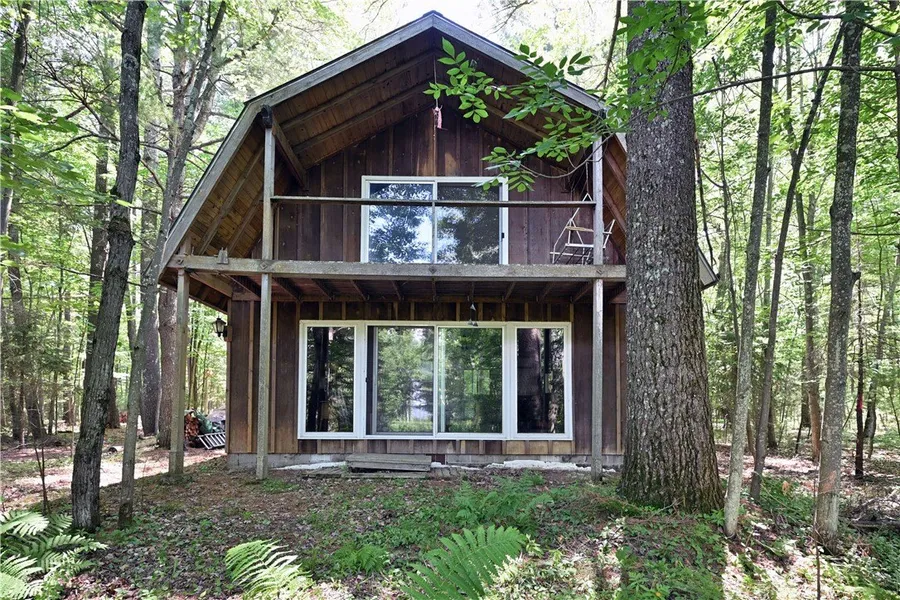 This property offers a rare 200 feet of natural frontage on one of Wisconsin's premier clear water lakes, in a grove of majestic hundred year old white pines. Building site for your distinctively designed home on South Bay, where loons and eagles nest, deer and other wildlife wonder through, and waterfowl and song birds migrate. An existing four season cabin with loft bedroom and 10x20 storage shed on the property will accommodate you as you make plans for your lifetime dream retreat!