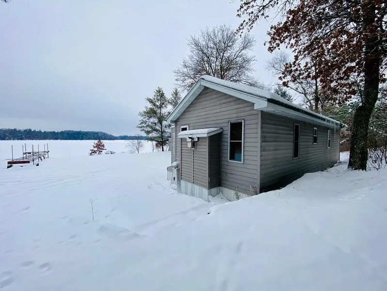 Discover peaceful Northwoods living on beautiful 757-acre Nancy Lake. This charming 2 bed, 1 bath cabin sits on 4.54 wooded acres with about 270 feet of shoreline and a rare flat elevation right to the water. Inside, enjoy a warm wood interior and an open-concept living space designed for gathering and taking in nature views. Nancy Lake is known for clear water, a 39-ft max depth, and excellent fishing, perfect for swimming, boating, and quiet days on the water. The private wooded setting offers that classic "up north" feel, while mature trees and lakeside views create a peaceful retreat. Outdoor enthusiasts will love direct access to recreational trails for four-wheeling, snowmobiling, an 18 hole golf course just down the road and cross-country skiing nearby. Whether you're looking for a getaway, year-round living, or a lakefront spot to enjoy all four seasons, this property is a true Northwestern Wisconsin gem.