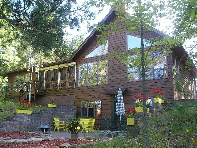 825504 South Twin Lake. Beautiful lot to watch the sunsets. 200' of sandy beach & 8 acres of woods. Private setting with easy maintenance landscaping. Loving attention to every detail of the over 2600 sq. ft. home. Soaring ceilings to custom-made cabinetry. On the main floor, highlights are the large open kitchen, living area with fireplace, study with gas fireplace, owner's suite with windows to the lake, and bath with laundry. Lower level has 2 bedrooms, full bath, lounge area, and storage. 36 x 48' pole building with heated workshop and 14' clearance door. 3 car garage with exercise room complete with TV. Full 50amp RV hook-up. Just too many details to mention.