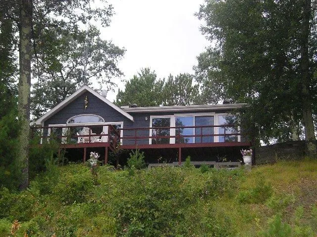 818612 GILMORE LAKE....It may be just 65' of frontage, but what great frontage this is. Sandy swimming beach with just enough elevation to get a great view. You don't need pictures on the walls...just the walls of windows and doors that overlook the lake. Living/dining is done in pine tongue and groove, kitchen, master bedroom suite has another wall of windows and private bath, plus another bedroom and bath. Four season porch has a wood stove that can heat the whole home. Walkout basement has the ever popular "Packer"/"Viking" room plus another bathroom. Add the multi level deck and cement patio overlooking the lake. Don't forget the garage with its bunkhouse, workshop, and storage room. Full package for only