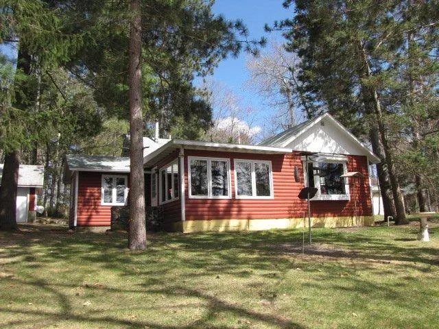 Very impressive log style two bedroom two bath lake cabin with two garages. Nice slope to the 160 feet of sand bottom west facing lake frontage on a great lake. Interior walls are very impressive older style vertical knotty pine hand rubbed waxed. All of this comes with a real stone faced fireplace, dining and living rooms are lake side for a very great view of the lake and the sunsets. This is really a place to see in order to appreciate it.