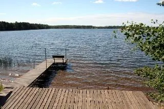 The 2 bedroom ranch is set on a picturesque pine studded plateau with approximately 175 feet of south sun splashed sandy frontage. Big Bass Lake is a 203 acre, 27' deep clear water lake with northern pike, walleye, bass, and panfish. Amenities include cathedral ceiling, kitchen skylight, main floor laundry, appliances included, dock, dry boathouse, shed and fishcleaning house.