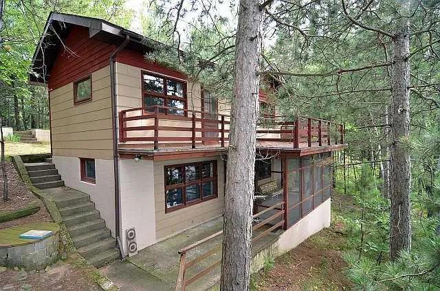BIG McKENZIE LAKE. Washburn County. Big Water! Big Fish! Big McKenzie is a trophy walleye and muskie fishing lake, plus panfish and bass. 160 ft western exposure, sunset views. Nicely private 1.20 acre lot, beautifully wooded with tall pines surrounding this comfortable classic lake cabin. Rustic northwoods dcor, mellow T & G pine walls and ceilings. 1,840 sq. ft. finished, 3 BR, 2-1/2 baths. Kitchen with eat-in dining area and open to the living area. Attached screen porch facing the lake on the main level, deck above the porch on the upper level. Hard sand swimming shoreline. Full recreational lake to enjoy pontooning, sailing, and swimming. Boat to supper club and bar/grill. Connected to Middle McKenzie Lake access by small boat or canoe through the culvert and channel to enjoy and explore an additional 500 plus acres of water.