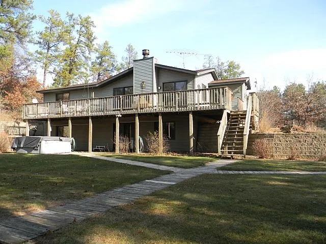 MINONG FLOWAGE. This is a home with a heart and land with a unique style. The land has 350 of frontage, 2.51 acres and a semi-private pone. Lot sits back in a quiet cove. Western exposure. Easy elevation to the water for swimming, fishing, and all water sports. Open living/kitchen area. Gas fireplace and patio doors in the living, snack bar in the kitchen. 2 large bedrooms, entry porch, and full bath complete the main floor. Lower level has a sitting room, 2 more bedrooms, bath, and two large storage rooms. Easy maintenance siding. 2 car garage, deck, hot tub, and retaining walls. Yes, you can even have winter funthere has always been a skating rink lakeside.