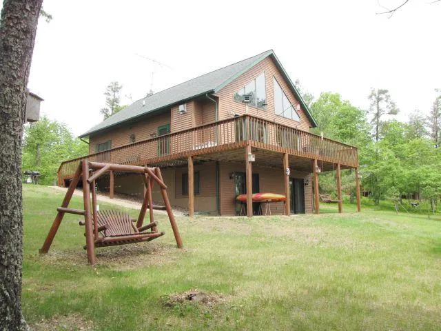 HORSESHOE LAKE - Great chalet style lake home with 219 ft of perfect sandy swimming frontage. Immaculately finished 3 levels/3 bedroom/3 bath walkout basement. Field stone gas fireplace. Master bedroom with your own bath rm. Main floor laundrey. Two stall detached garage & addtional storeage shed. Enjoy this completely furnished turn-key chalet from the lakeside decking with a great view of the lake. 18 hole golf course close by and ATV/ snowmobile trails as well.