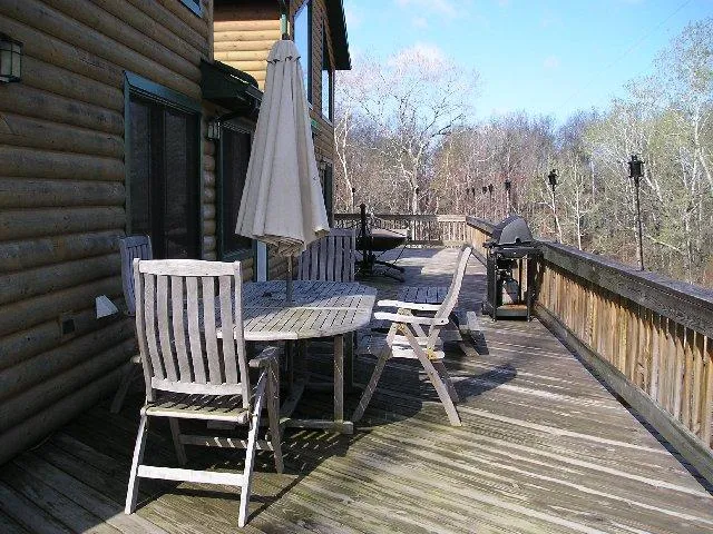 MLX 873884. GILMORE LAKE. 6.120 wooded acres and 204 ft level sand Florida style beach on this popular fishing, skiing, and boating lake. Enjoy this impressive cedar chalet that has full views of the length of the lake. Property is offered turn key with all furnishings included inside and out, appliances, plus outdoor recreational items including a pontoon, jet ski, and hot tub. Welcome to luxury with 2,600 sq. ft. finished, 5 bedrooms and 4 baths, two living spaces each with their own kitchen, bedrooms and baths, dining and living areas. Interior is northwoods rustic with plank wood floors, pine walls, vaulted ceilings, two fieldstone fireplaces. Each space has a laundry room. Connecting both spaces is a 4-season enclosed porch with direct access to the outdoors and the two level deck and hot tub. Close to an 18-hole golf course, restaurants, and conveniences; on the snowmobile and ATV trails. $550,000